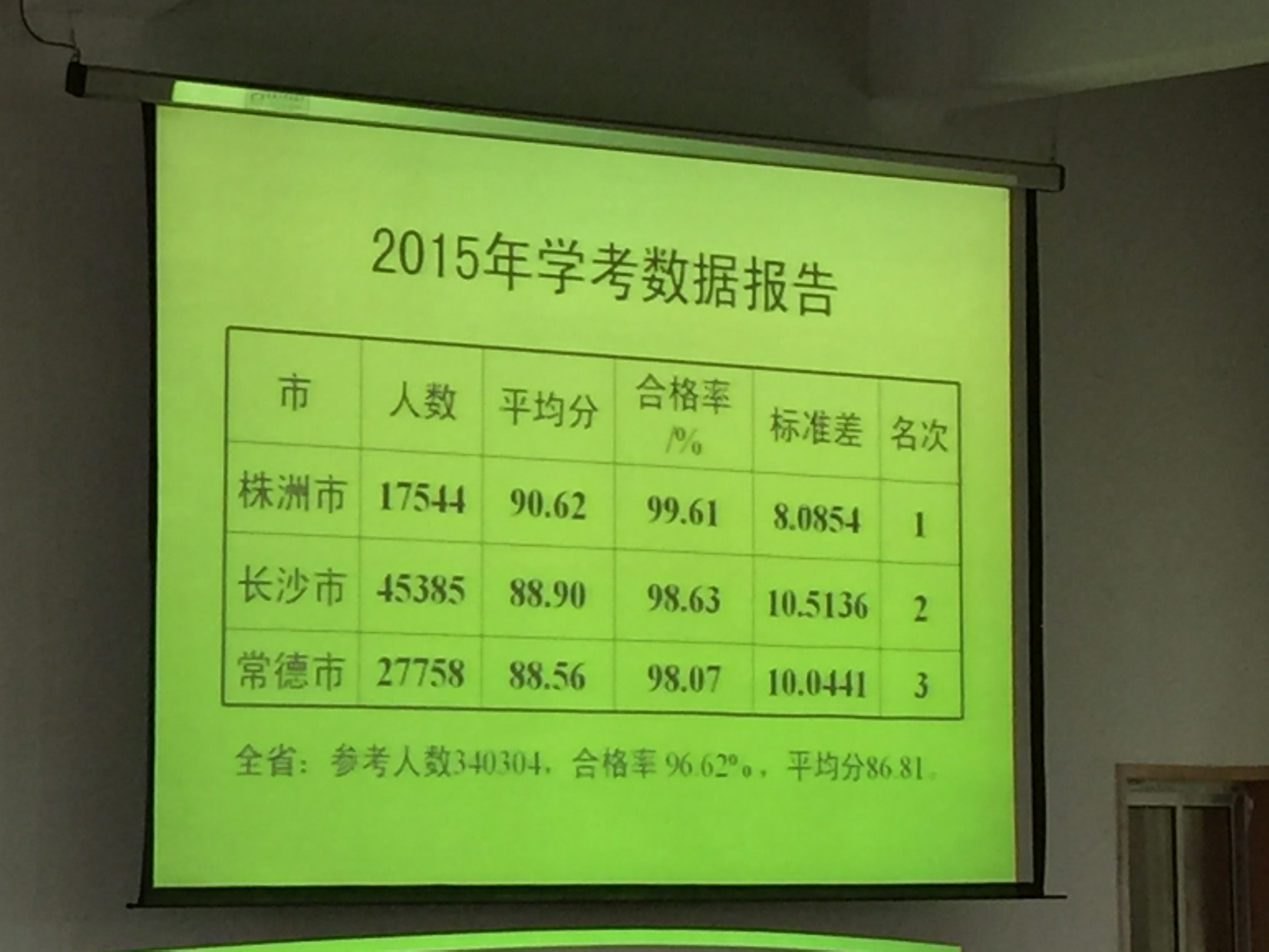 市教育局化学学科带头人周学良,对去年我市化学学考情况进行了深度的剖析,株洲市去年学考平均分、合格率居全省第一。学考数据报告显示:南方中学去年合格率100%。