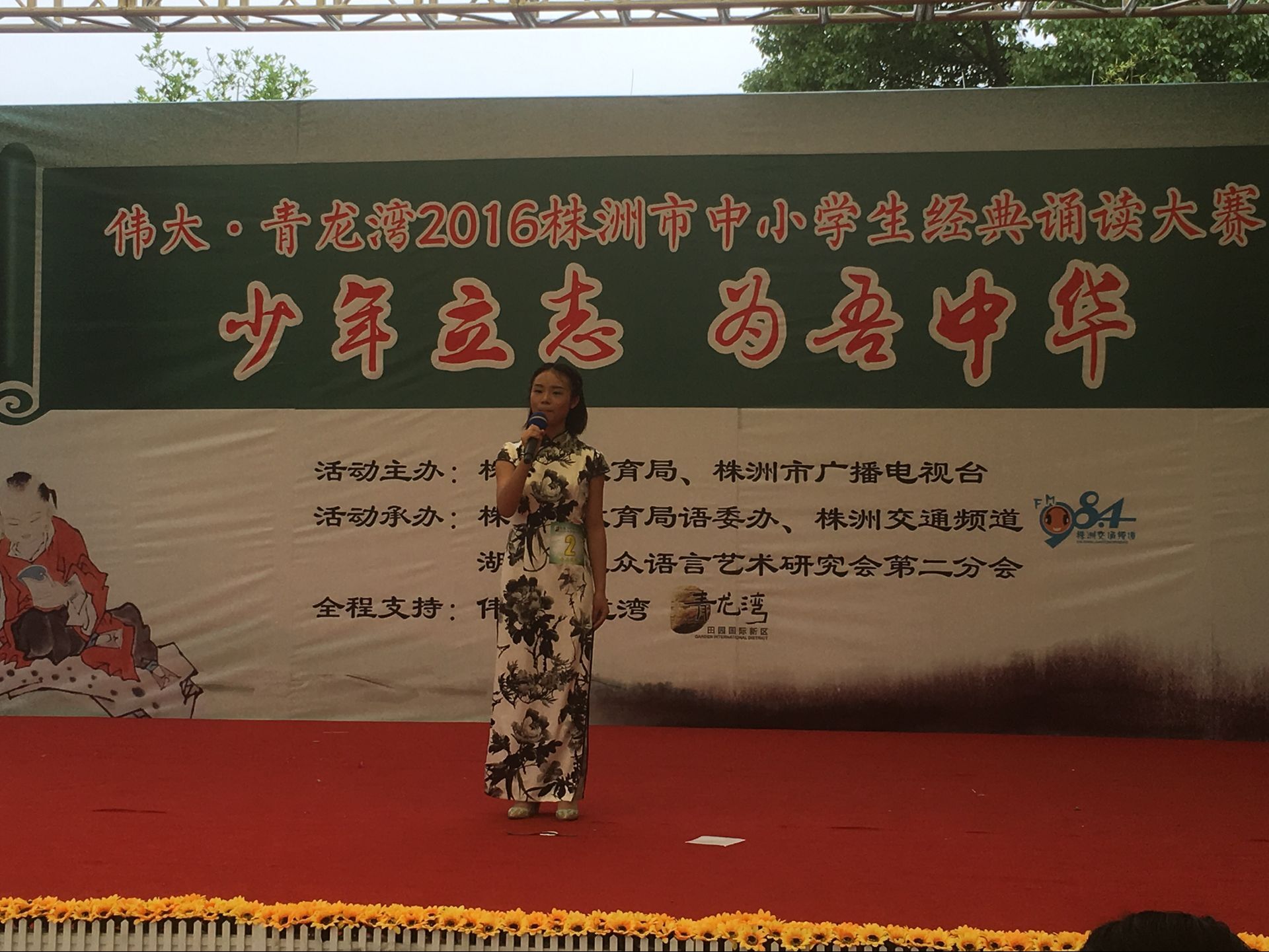 2016年5月2日,伟大.青龙湾2016株洲市中小学生经典诵读大赛上,株洲市南方中学1508班周星辰同学深情朗诵《南京!南京!》,以全场最高分,斩获特等奖!