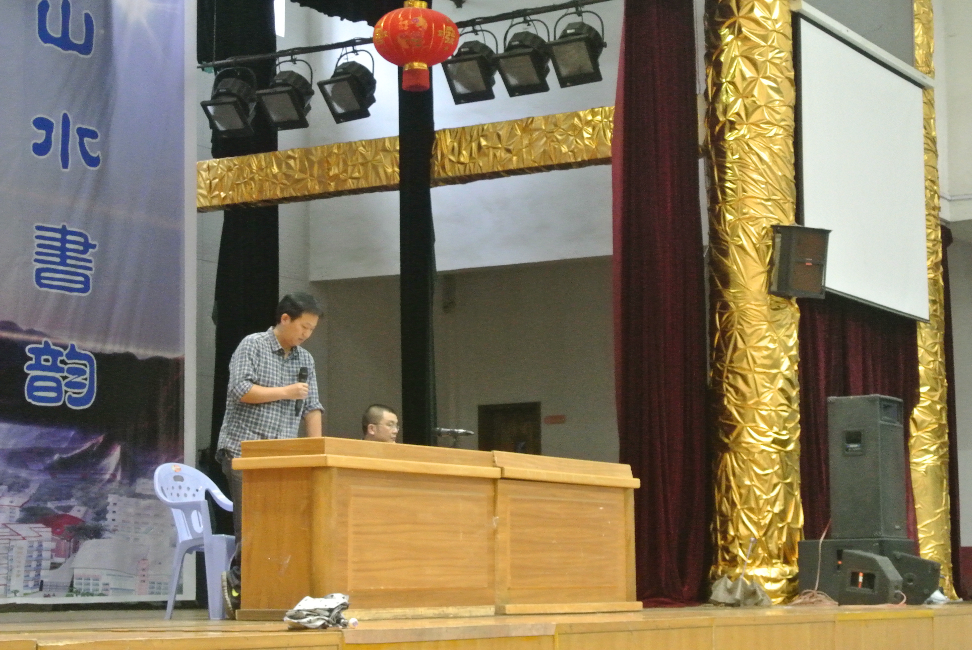 5月6日第七节课结束后,南方中学高二年级全体师生至体艺馆召开年级大会。会议以备战学考为主题,尹小红主任和周科长对此发表讲话。