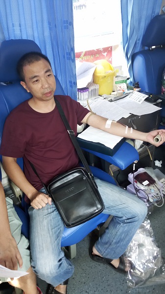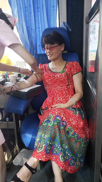 2017年9月18日下午2:30,采血车驶入校园,经过各工会小组选拔的三十多位老师来到采血车上,略显单薄的纪委周亚娟书记,也来到采血车上,要求献血。填写表格,验血……在筛选的过程中有老师因种种原因被告之此次不适合献血而遗憾离开采血车。总务科报送的两名献血者,经筛选都不宜献血,科长刘贡宇马上喊来本科的罗安师傅,当护士看到罗师傅填写表格中的年龄为58岁时,亦被告知超龄了不能献血。罗师傅说:唉,来晚了,再没有机会了!总务科外出公干的会计赵伟,一回来听说总务科献血者“全军覆灭”,办公室都没回就直接上了采血车。