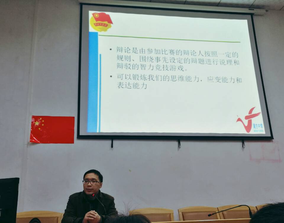 3月14日,南方中学辩论赛在多媒体教室拉开帷幕。团委副书记石固宁给来自高一年级百余名参赛辩手和辩论赛的主持人参加了赛前培训。