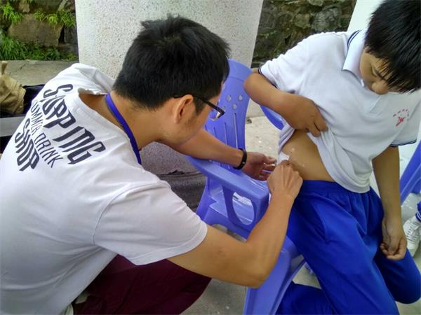 医疗服务点设在主席台广播站旁边,以利学生容易找到。