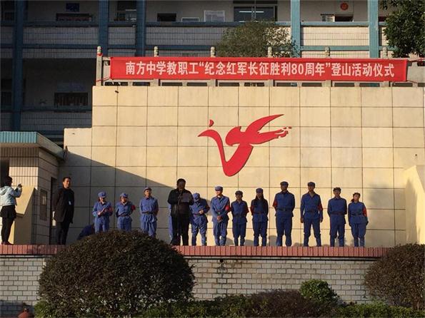 南方中学纪念长征胜利80周年,学校工会于2016年11月28日策划了一次登山活动,让生活在和平年代的老师们小小体验一下当年红军爬雪山、过草地的滋味。活动中还设置了“闯关”环节,闯关队员每经过一道设置的关卡要回答出有关长征的知识,才可进入下一道关卡,直至登顶。