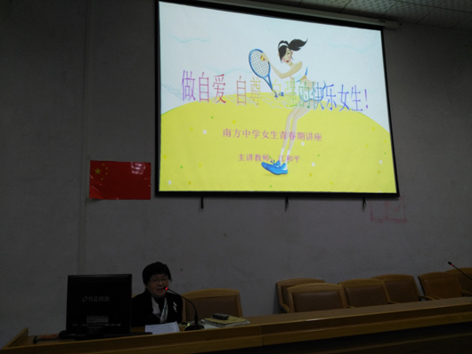 青春期教育是学校精神文明建设的一项重要内容,也是学校素质教育的重要组成部分。为了进一步强化女生的自我独立意识,增强女生的自我保护意识及人际交往能力,12月15日第八九节在多媒体教室,江和平老师为高一年级全体女生做了题为“做自爱自尊自强的快乐女生”的女生青春期健康讲座。