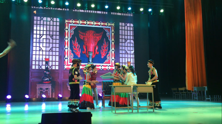 这次英语短剧,准备时间短,任务艰巨。但是在学校领导,特别是米仁金校长和谭志中副校长的鼎力支持,党政办和艺体科积极积极协助下,高二英语备课组分工合作,在大课间、午休和晚自习,召集学生进行编排。贺静宇老师从整体上把关短剧的质量,刘晓英老师参演短剧,彭平老师负责课件、音效和道具,曹建宁修改剧本。