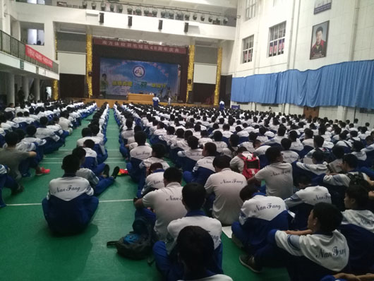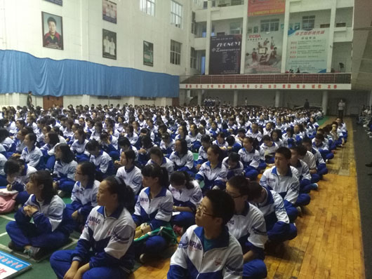 10月19日下午八九节,高一年级在体艺馆召开了学生大会,全体学生参加。