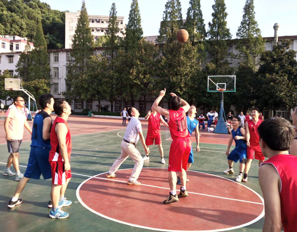 南中男神们期待的年度教工男子篮球赛于昨天下午在校篮球场精彩开赛。教职工男子篮球赛是南方中学的一个传统赛事,每年的下学期工会就要举办这种参与性广的比赛。为了让参与的人更多更有趣味性,工会也是想办法修改比赛的形式、规则,如组织过三人制篮球赛、男女混合赛、每队不能同时上两名体育老师等等。