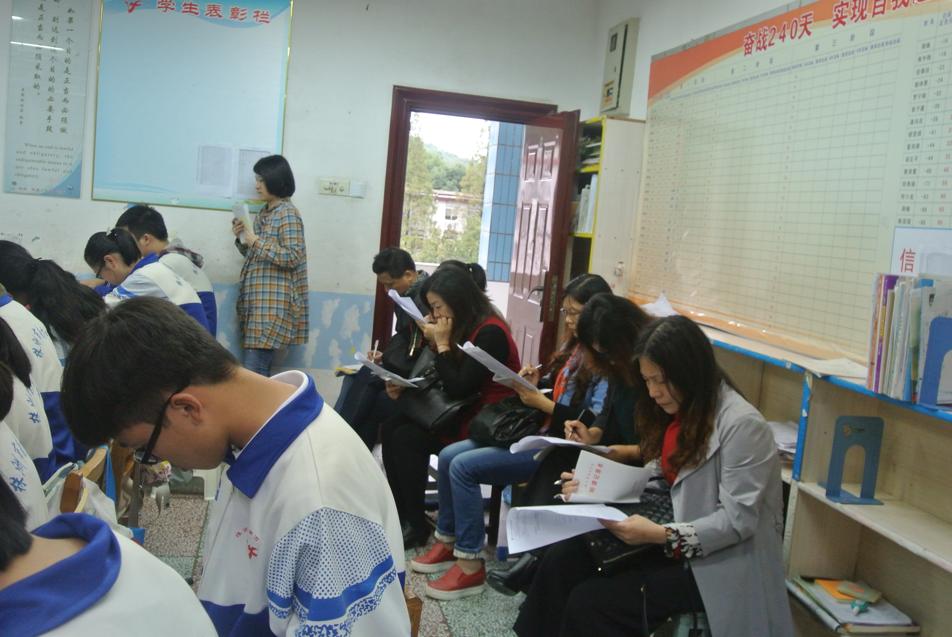 高三全体老师在热烈欢迎他们的同时,积极配合了这次活动。今天的第二、三节课,高三14个班全面向他们开放。湘乡市四中高三老师听取了高三年级各个学科老师的课后,高三的备课组长和部分老师参与了与湘乡市四中高三老师的交流活动。而高三英语组、生物组等备课组 全体老师都参加了这次两校间的交流。两个学校的老师们就班级管理、学科教学、复习迎考策略等方面进行了全面的交流。