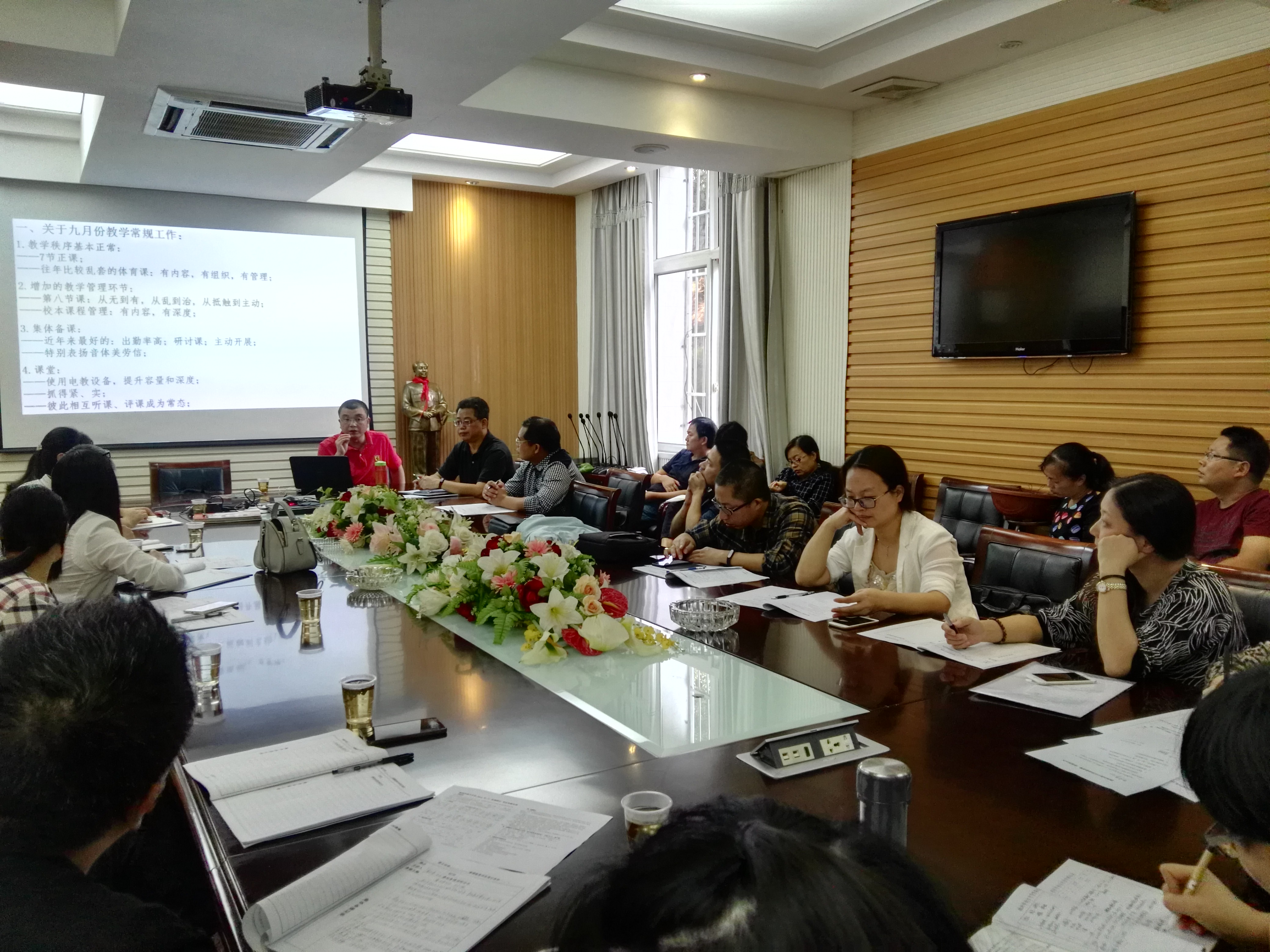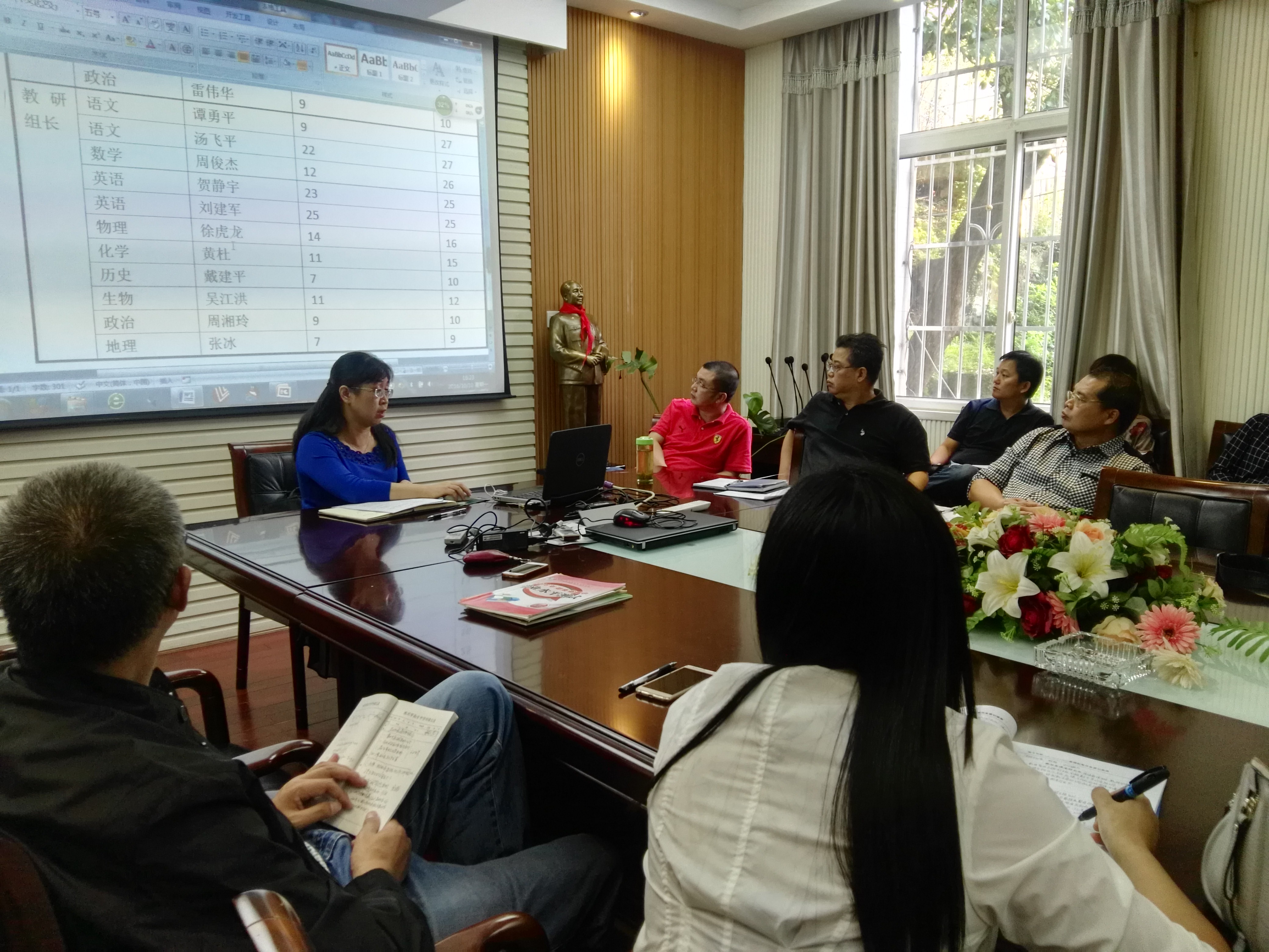 10月10日第八节课,在南方中学科教楼会议室,教务科、教研室联合召开了全校教研组长、备课组长工作会议,此次会议由教务科科长周一坪同志主持,会议主题为抓实教学常规工作,主管教学副校长谭志忠同志出席会议。