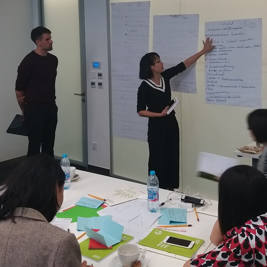 研讨会上,来自中国14个城市、共计24所由歌德学院支持的PASCH学校的德语老师,共同就“森林”“气候”“资源效率”三大主题进行了讨论和研究。各位德语老师集思广益,积极发挥自己的创意和想法,提出可行的环保项目。同时,各位老师分成小组,分别就三大主题的项目措施、经济预算、参与成员、项目目标、需要提供帮助的机构以及在实施过程中将会遇到的挑战进行了细致的策划。为此,环境和自然保护领域(世界自然基金会和北京林业大学)以及德语作为外语方面的专家合作编写了一本专门的教师手册,以指导各项目小组的项目实施。