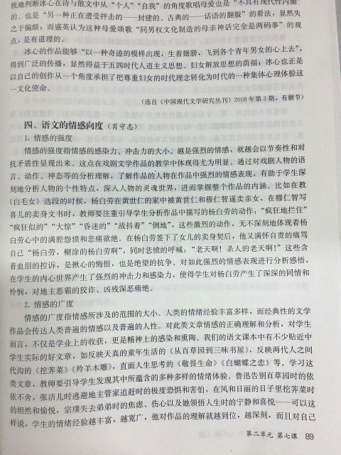 (本网讯) 近日,从首都北京传来喜讯,2016年下期才启用的人教版七年级语文上册教师教学用书P89-90页摘引了我校肖守志老师2013年由国家行政学院出版社出版的专著《语文言意情教学论》中的“情感的向度”一节,共计一千余字。肖老师此著作在今年七月获评株洲市社科联组织的第十二届哲学社会科学优秀成果二等奖,而新版初中语文教师教学用书能摘引肖老师著作中的篇章,足见该著作学术价值之高。