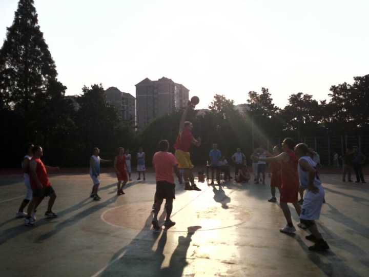 上周四,高三与高二教师篮球队,进行了一场充满激情和对抗的球赛。
