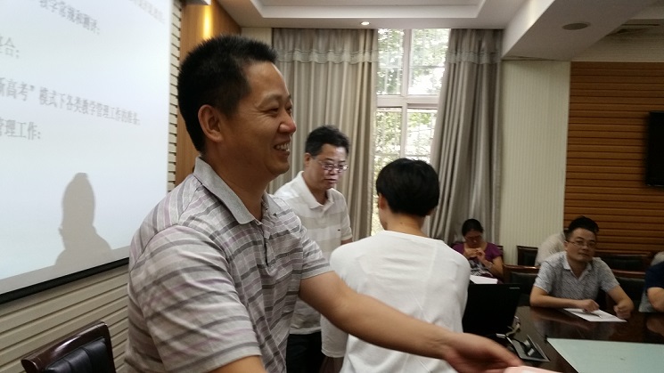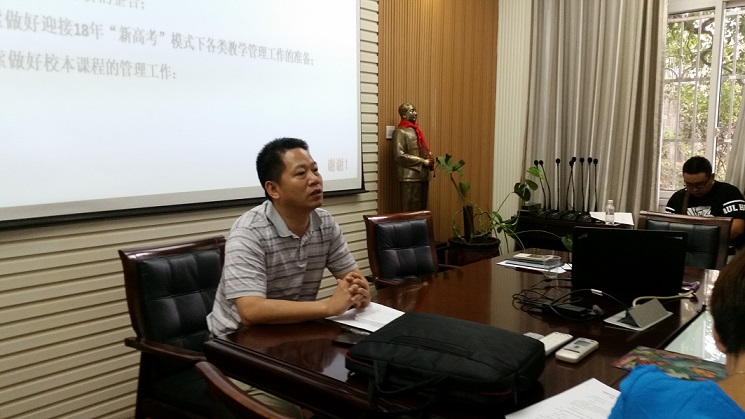随后,分管教学的谭校长发言,他指出教研组要带好队伍,让每位老师都成功,让每位老师用心教学;要搭建平台,开展教学之外的讲座,让学生有时间去听讲座;加强过程控制,认真组织集体备课,教务科要加强监管教研活动,各备课组要交每月备课计划,要有学案,形成学案合集;抓好教学常规;要改革创新,探索培养拔尖人才的路径,提高一本升学率。