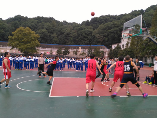10月24日下午,秋寒阵阵,冷气袭人,南方中学教职工篮球赛高一队对高二队的比赛在这样的天气里准时开始。