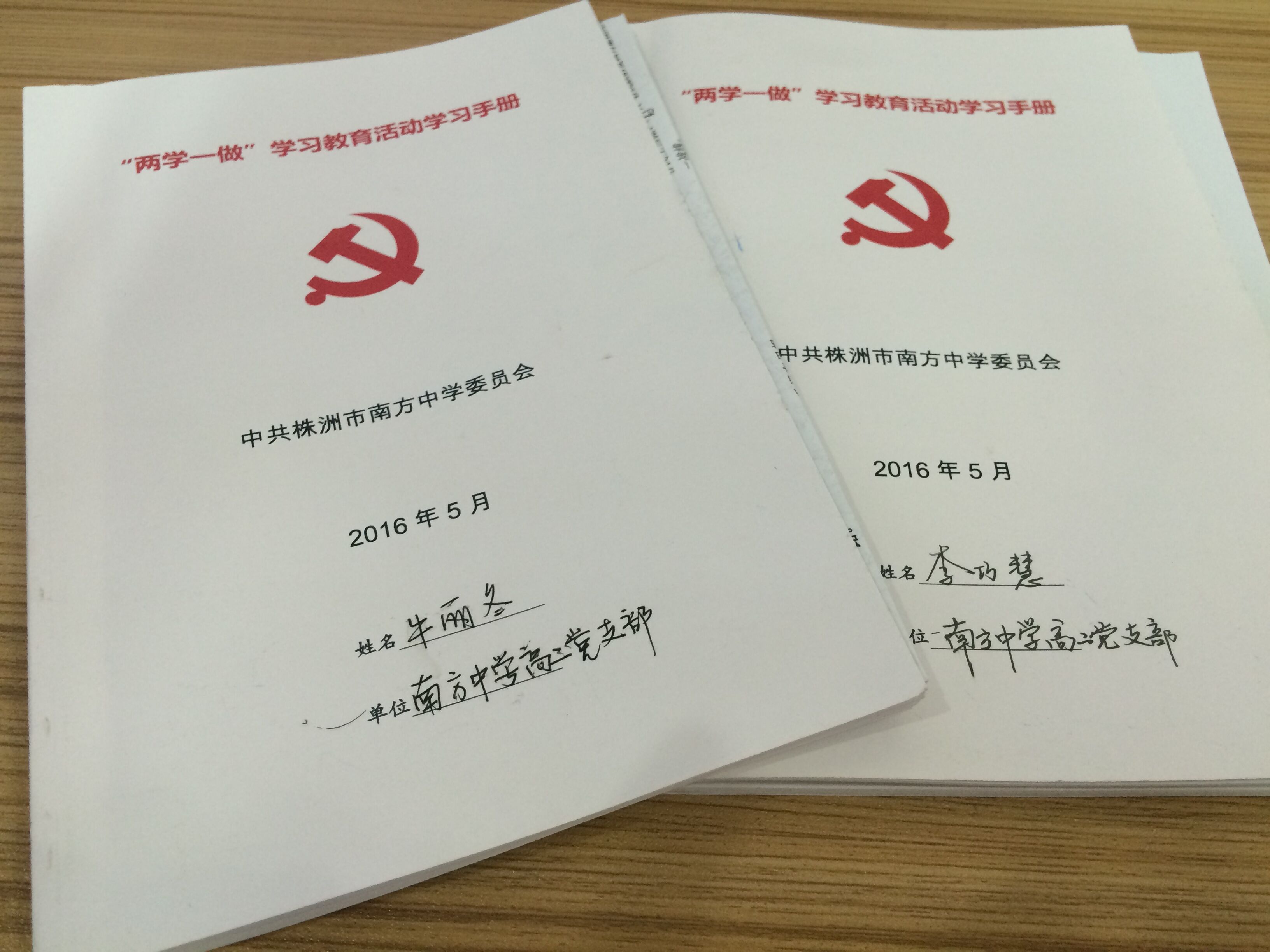 会议上,支部书记尹小红为大家发放“两学一做”学习资料,包括《“两学一做”学习教育活动学习手册》《习近平总书记系列重要讲话读本》和党章党规细则,其中《学习手册》是南方中学党委会为各位党员制定的,包括读书笔记、观影感悟、专题学习研讨笔记和学习教育活动指定学习书目的专栏学习心得记录区。尹小红向大家进一步强调“学党章党规、学系列讲话,做合格党员”的重要性和在教师教育工作中的意义。
