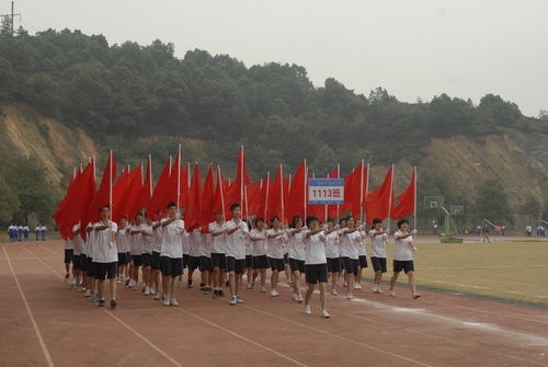 6日上午8点,伴随着运动员进行曲,同学们组成方阵走过主席台,醒目的班牌,嘹亮的口号,矫健的步伐,展现了健康向上、意气风发的精神风貌,1101、1102班同学们脸贴五星红旗胶条,身着印有“一班二班,非同一般”字样的红色T恤,格外吸引眼球,1111、1112班方阵阵型变化多样,大家配合默契,行动一致,成为开幕式的一大亮点。在全体运动员悉数入场后,伴随夏立威校长开幕一声令下,礼炮齐鸣,和平鸽振翅飞向天空,久久盘旋在会场上空,2012年秋季田径运动会正式拉开帷幕。开幕式由叶欣副校长主持,林喜元书记致精彩开幕词,裁判员代表、运动员代表分别做了宣誓。