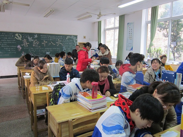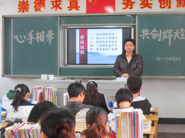 2012年12月9日,高二年级家长会召开。此次家长会充分考虑到学生及家长的需求,在以往家长会的基础上,大胆尝试,召开形式有新的突破。会议模式从以往的班主任包揽制变为任课教师全面参与家长会,旨在让学生及家长能够与任课老师面对面交流,针对不同学生的学习情况作出具体分析,通过三方的有效沟通找到相对科学的解决办法。为了让学生及家长能够与任课老师充分交流,年级组之前特意将学生家长分流——走读生家长上午携孩子一同来校,住校生家长则安排在下午。家长会从上午8:30开始,一直持续到下午6点左右。在此期间,所有家长都很珍惜这样难得的机会,纷纷和学生各科老师做了面对面的交流。各班教室都出现众多家长围住任课老师了解学生学习情况,并咨询相应的解决方法这种异常热烈的场面。