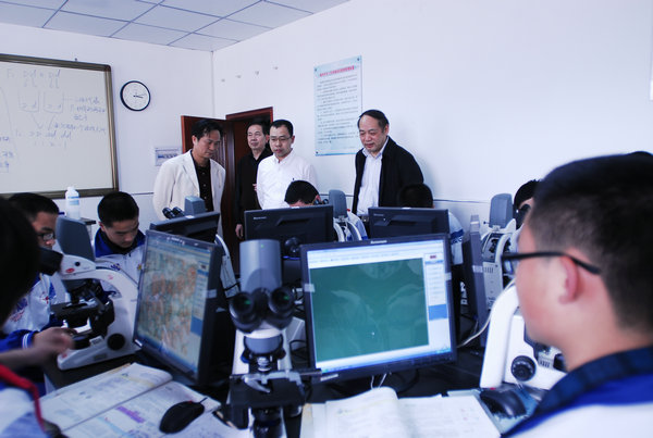 陈湘生主任督学和毛朝晖副市长对生物基地一流的设施对学生实验能力的提升十分赞赏