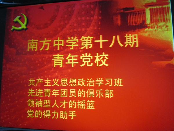 (本网讯) 2013年4月11日下午筹备已久的南方中学第18期青年党校动员会于南方中学微格室如期举行。这将是一次无比严肃又意义非凡的成长之旅。我们将此次青年党校定义为一个“共产主义思想政治学习班”,一个“先进青年团员俱乐部”,一个“领袖型人才的摇篮”,一个“党的得力助手”。