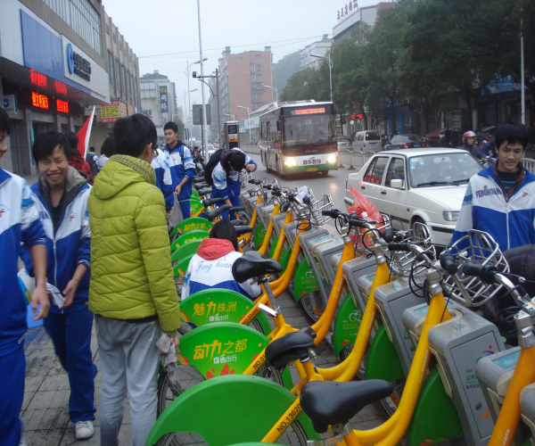 近日,株洲市凤凰中学政教处组织60多名学生志愿者分成若干小组,分别来到位于凤凰山下南方社区各公共自行车停放点,对停放在此的公共自行车辆进行义务清洗。不过多时,学生志愿者就将该社区道路两旁十多个公共自行车停放网点摆放的车辆清洗干净。此项活动,已作为该校志愿者定点服务项目,虽微不足道,但在骑车人的眼中是件好事。