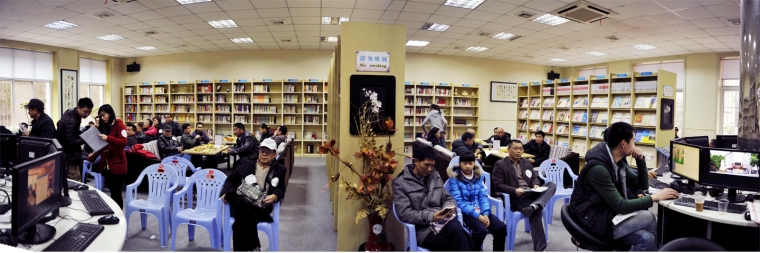 于是当130多位从株洲或湖南其他县市甚至湖北、江西赶来参加年会的网友走进南方中学时,他们被深深地吸引了。摄影爱好者纷纷举起相机,一次次对着学校雕塑、池塘、学生按下了快门,读书爱好者拿起书架上的书,津津有味地看了起来。坐在书吧沙发上,端起一杯香
