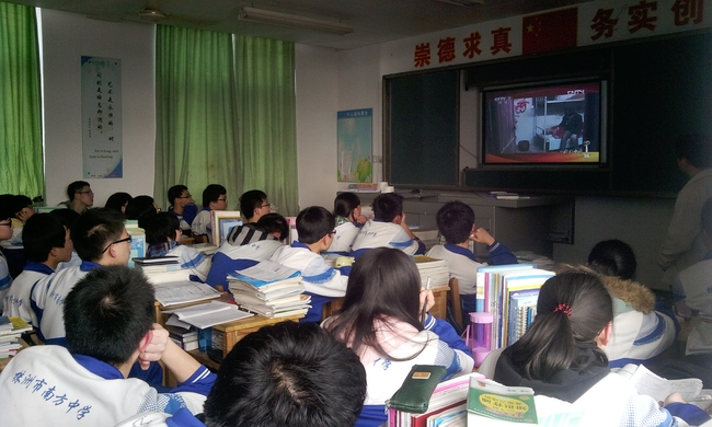 (本网讯) 三月,时而春光明媚,时而细雨绵绵,这个多情的时节里高二年级安排学生集体观看了催人泪下的“2012感动中国”。 将近2个小时的时间里,学生们聚精会神,或是悄然拭泪,或是默默无语,一颗颗年轻的心如春日里化开的湖面,荡起动人的涟漪。最好的教育不一定在于学生的成绩,却一定要让他们拥有一颗温润的心,正如南中一直秉承的“办有灵魂的学校,育有骨气的新人”的教育准则。而这次活动,无疑是一次直击心底的教育。