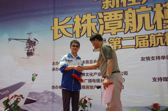 本次比赛共有50余名选手参加,分为成年组和青少年组。由于在首届比赛中表现优异,我校获邀参加了本届比赛。9点30分,株洲市毛市长宣布比赛开始,固定翼飞机、50CC YAK54汽油机飞行、水上飞机等众多航模是一 一亮相,活动现场气氛火爆,观众们大饱眼福。南方中学航模社3名选手参加了青少年组的比赛,我校旷丛涛选手继去年夺冠后,再次以精彩的表现夺得青少年组冠军,宋蓉子晨和宋蓉子晗两位选手同样表现出色,在本届比赛中获得优秀奖。