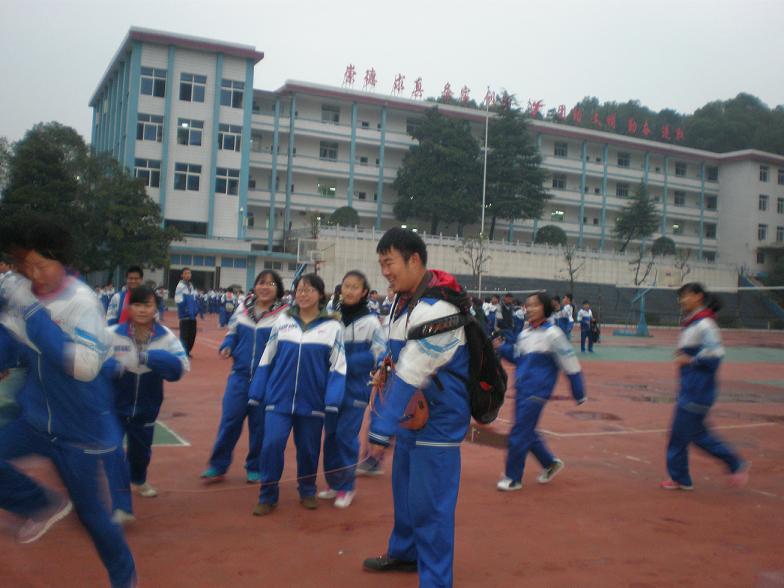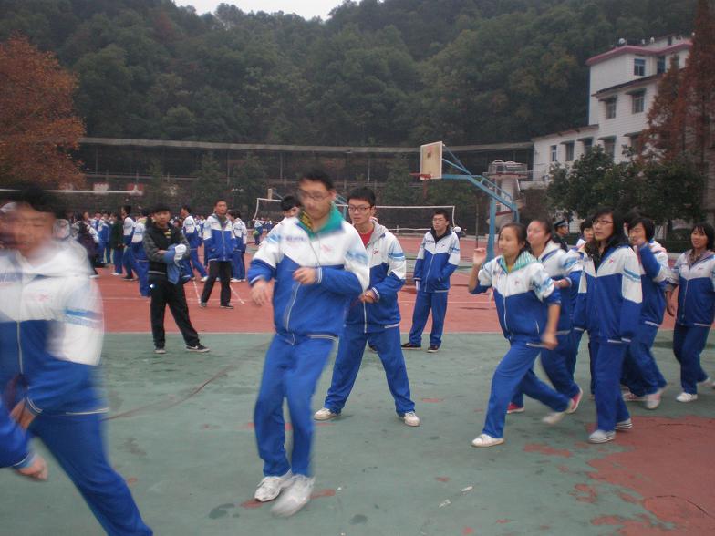 虽时至初冬,但我们的校园却依然热情奔放。昨天下午第八节课,广播传出欢快的乐曲,高三年级组织各班进行了激烈的跳绳比赛。