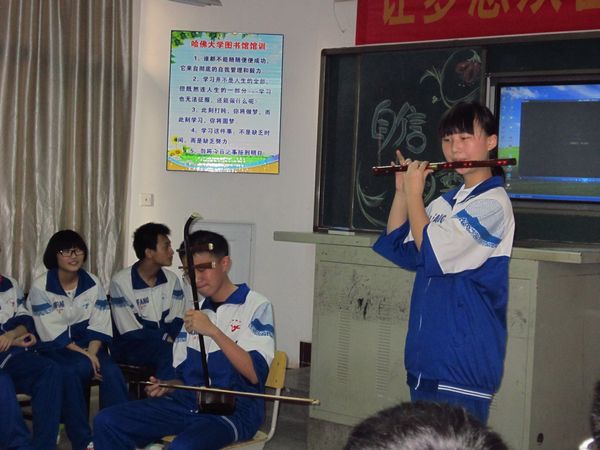 班会以澳大利亚“小鸡腿”力克胡哲的励志短片开始,提出做人需要“自尊自爱自强自信”的班会主题,然后show出了一系列精心准备的学生节目:二胡、笛子合奏《茉莉花》,单口相声《洗脚城》,诗歌朗诵《中国人,不跪的中国人》,独舞《傣族舞》,小合唱《倔强》等。梁诚彬和郭乔如同学专业级的器乐合奏让人在宁静中领略了中华文化的魅力;经过改编的相声经罗贝利同学的方言演绎,博得阵阵掌声与欢笑;刘亮、李宇、陈玮婉、朱让邻同学的四人朗诵跌宕起伏、遒劲有力,令人群情激奋;陈玮婉同学的柔韧优美的孔雀舞让人叹为观止;舒禹、张震武、刘翰鑫同学让我们看到了一个糅合了创新动作和唱腔的新版《倔强》,这些节目寓教于乐,将自立自强的精神蕴含其中,全体体同学快乐并感动着。最后,班主任沈正老师做了总结发言,将班会主题升华到了新的高度。