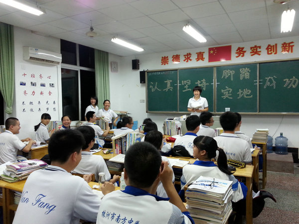 (本网讯) 高三自实行周周练的测评模式之后,如何兼顾学生相对灵活、自由的自主学习以及师生交流对话成为当下一个重要问题。班主任纷纷利用周末晚上,邀请各个任课老师进入班级与学生面对面的交流。一方面就前期学习上的问题提出一系列建设性的意见;另一方面还是重点给予鼓励。肯定大家在学习上的努力,以及已经取得的成绩。细心的老师还针对每一个学生的特点,发掘其个人优势,给学生以极大的鼓励。整个班会课在一片欢声笑语中进行着。学生对于老师细心的指点纷纷表示感谢,并送上了最热烈的掌声。“你们有信心做好吗?”面对老师们这样的问题,学生报以坚定的回答。这样面对面的交流,将老师对学生的期待和鼓励带给每一个学生,让他们在接下来的每一天中日益坚定,日益成长。