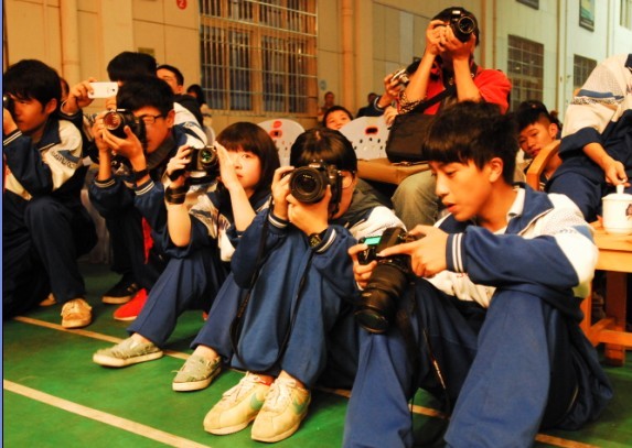 在舞台下,还有一群手持相机穿梭在舞台四周,认真记录晚会每个精彩瞬间的同学们—校园电视台的小记者们。校园电视台记者团刚成立,便吸引了来自各个年级有着摄影、写作兴趣爱好的同学们。记者团共有20余人,学校各大活动中都能看到他们的影子。