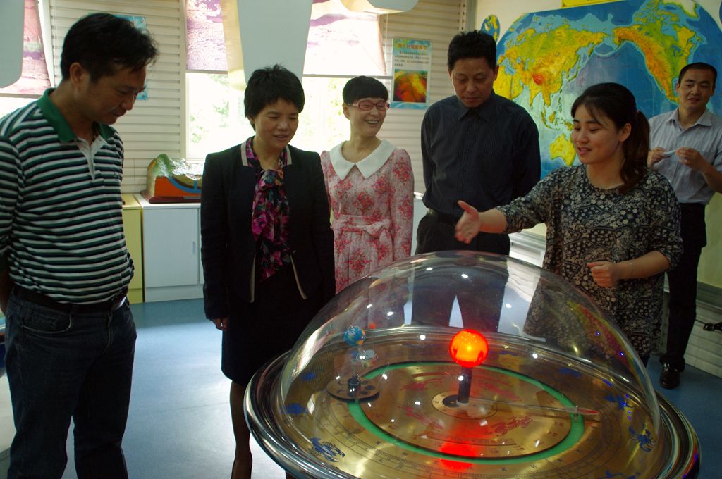 图为:周雪辉副部长(左二)参观地理学科基地
