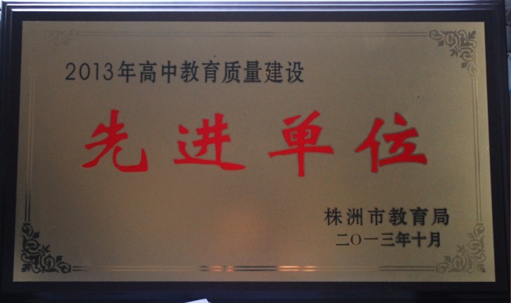 2013年10月11日,2013年株洲高中质量建设会在攸县一中组织召开,会上表彰了一批先进典型。我校摘得了两项大奖:“2013年高中学业水平考试先进单位”和“2013年高中教育质量建设先进单位”。