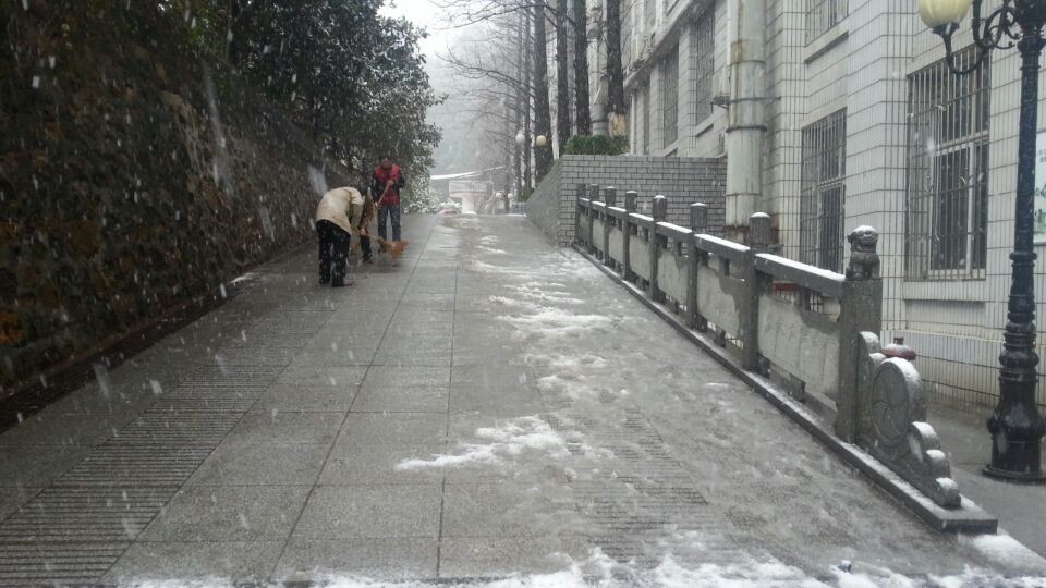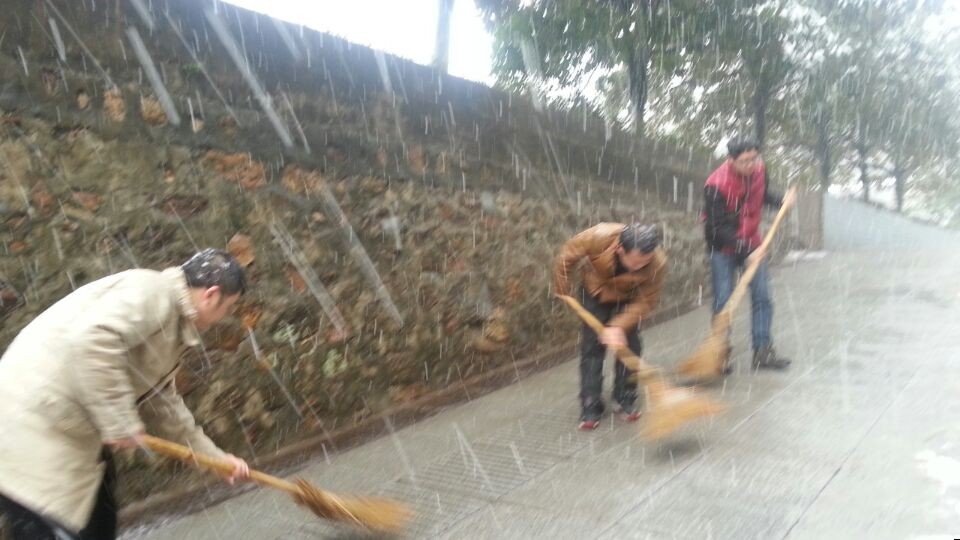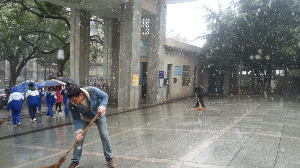 2月18日,开学第二天,一场猛然来袭的漫天大雪迅速给校园披上了白色的盛装,大雪带来美丽景致的同时,也给全校师生带来了一定的安全隐患。为确保校内师生的出行安全,在保卫科同志的带领下,老师们纷纷拿起扫帚,清扫校门内外的积雪,为全校师生扫出一条爱心之路。