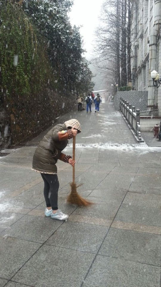 尽管气温很低,但是他们红红的脸上都鼓出了滴滴汗珠,经过大家热火朝天的努力劳动,从学校大门通往各教学楼的主干道上的积雪基本都被推扫到了道路两边,为大家及时扫出了一条安全之路。