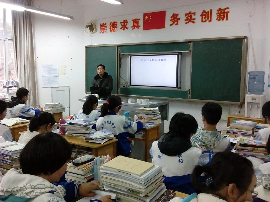 为了树立和弘扬社会主义核心价值观,提高学生的思想道德水平,3月12日下午第八节课,高一年级各个班级在班主任的带领下,集中开展了以“培育和践行社会主义核心价值观”为主题的班会活动。