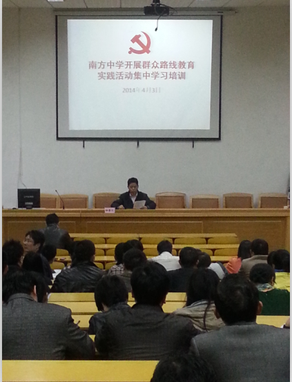 根据市委教育实践活动领导小组《关于做好全市党的群众路线教育实践活动学习教育、听取意见环节工作的通知》(株群组发〔2014〕7号)要求,南方中学制定了详细的学习培训方案,在整个4月份期间,利用晚上和周末的教育教学课余时间,按照文件要求的必学内容,安排了9天共计40个学时的学习培训。