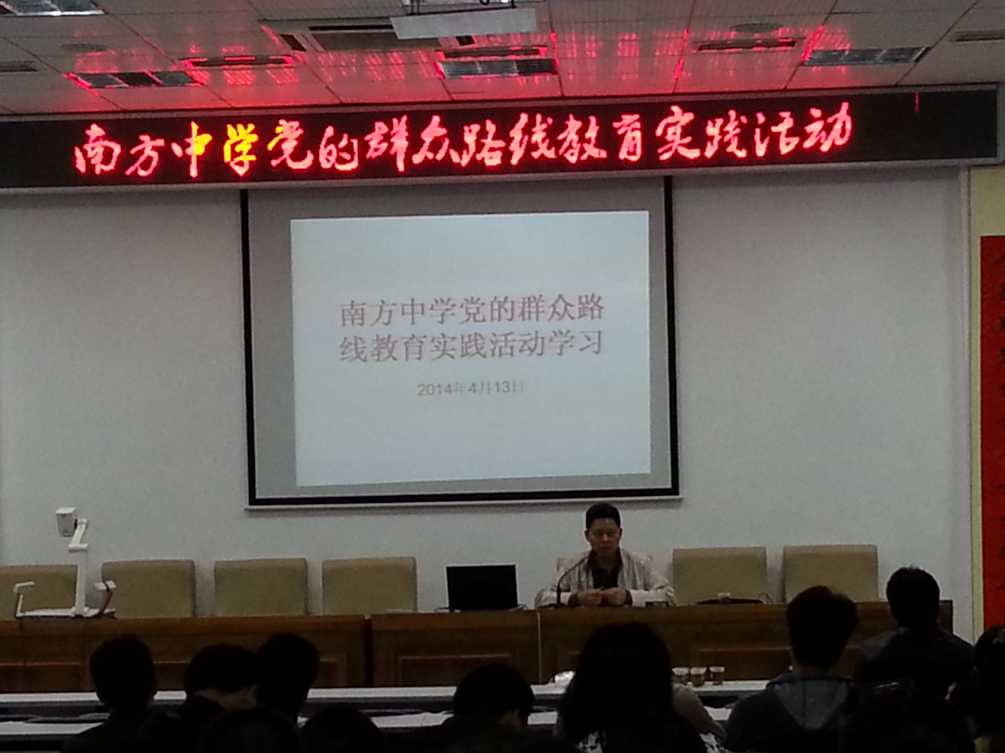 4月13日,南方中学群众路线教育实践活动集中学习培训第三次学习活动在多媒体教室进行。一天中,全体党员和干部观看了教育影片《苏联亡党亡国二十周年祭:俄罗斯人在诉说》,并对照学习手册进行了自学。