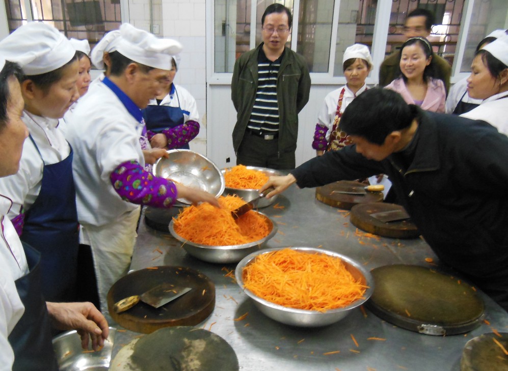 为了进一步强化食堂工作人员的团体意识、服务意识,不断提高业务水平、工作技能,规范操作流程,激发工作热情,更好地为师生服务,4月25日南中食堂全体员工参加了学校总务科和校工会组织的“迎五一"业务技能比武竞赛。