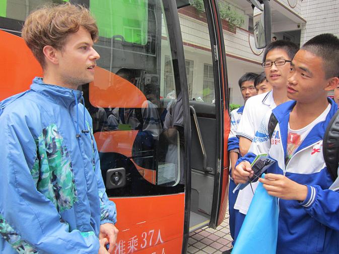 “德语大篷车”此次株洲行只访问两所学校,另外一所是株洲市外国语学校。在那里,大篷车为零基础同学上了一堂生动有趣的德语入门课,并组织了丰富多彩的德语游戏。同学们一边学着“爸爸”、“妈妈”、“爷爷”、“奶奶”、“橘子”、“苹果”的单词,一边玩着抢凳子的游戏,真是学着并快乐着。