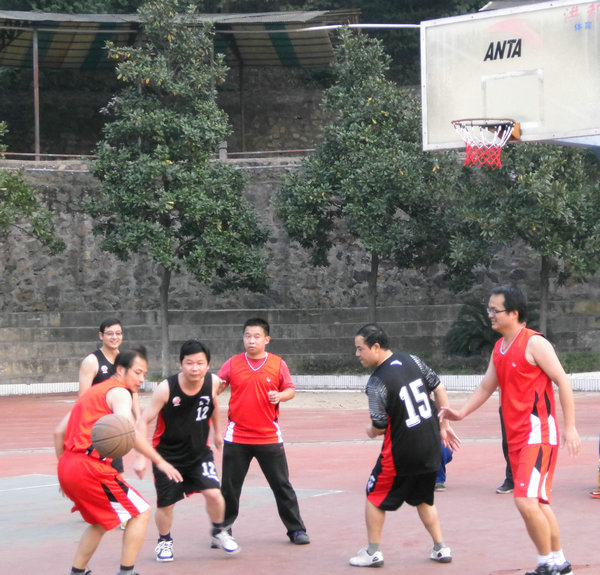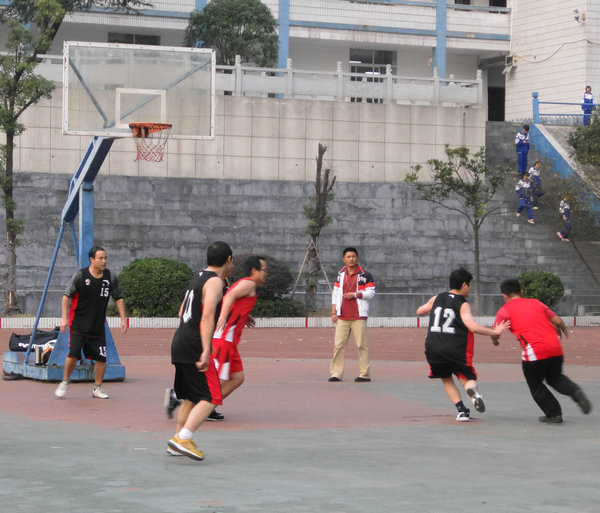(本网讯) 周二下午,高三迎战集团篮球赛,首战告捷。由年级组组建的团队凝聚了高三组的精粹力量。外线有陈恒业老师三分球保障、内线有胡刚华、谭海云等老师突破,加之球员速度、团队协作等多方优势,首场作战,高三球队势如破竹。球队在场上表现相当不错,充分展现了高三团队的风貌。此外,雷伟华老师为此次篮球赛顺利通关,早早做好了迎战准备。先是为球队集体配备了队服,又积极组织年级组老师前来呐喊助威。第一场对抗赛中,高三年级胜利归来。让我们期待他们下一次的精彩表现。