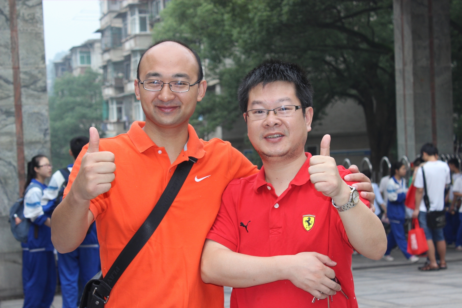 学考的第一天,全体高二老师身着统一的红装,面带笑容以一种高昂的情绪把学生送进考场。而班主任收发准考证的时候的各种方式给学考添加了一道亮丽的风景。