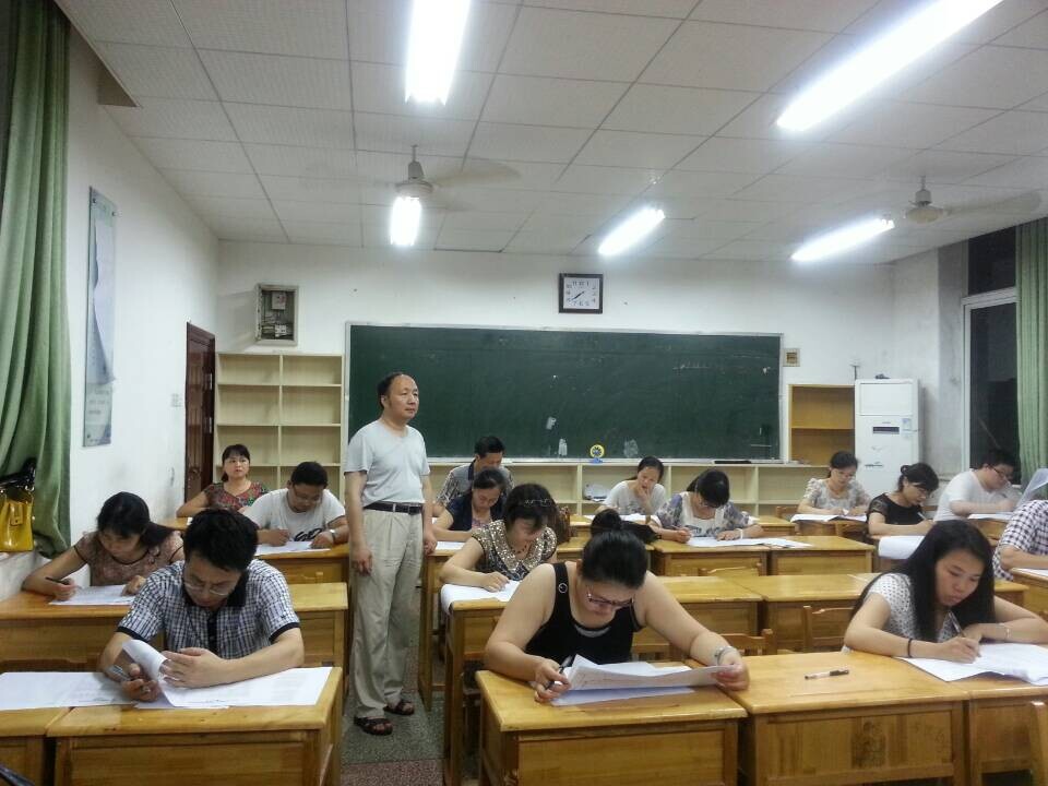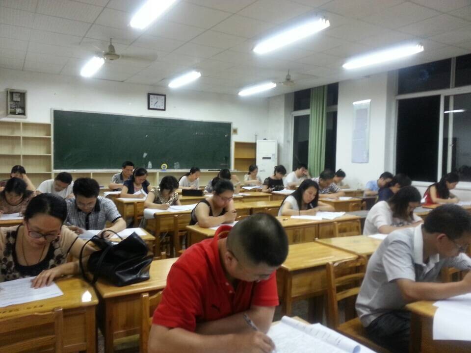 一年一度的南中教师业务考试昨晚七点半在高中楼举行,共有近120名老师参加考试。