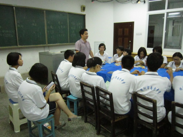 (图为陈恒业老师为大家介绍学生会各部门职责)