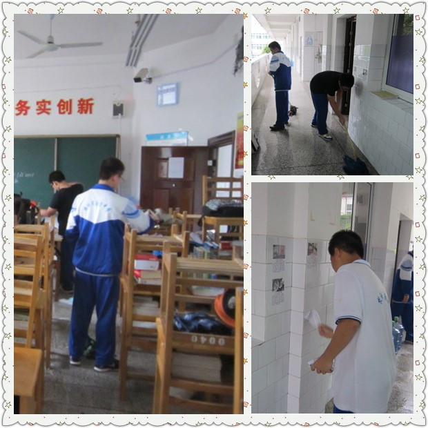 (同学们打扫卫生认真投入的身影)