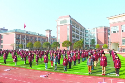衡阳市成章小学(雁栖湖校区)学生在做课间操