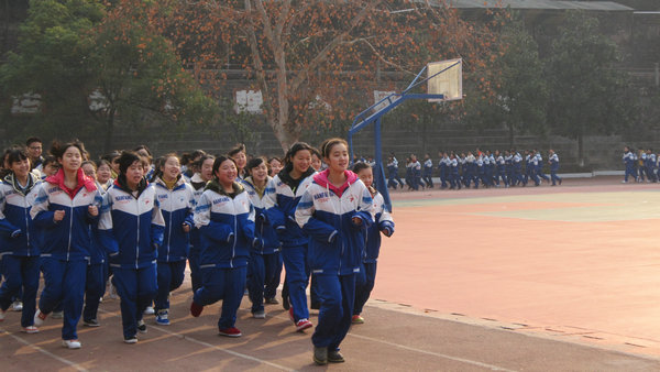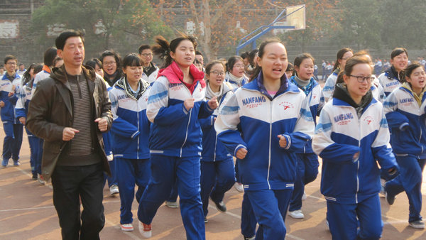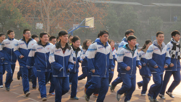 就在这个不大的操场上,高三各个班级自成方阵,在跑到上奔跑。由远及近,由近向远,他们每一个脚步都无比坚定,冬日里绽放的青春容颜也因为梦想而更加绚烂。他们的热情也感染了老师,不少班主任纷纷加入到队列当中,一起奔跑在操场上。