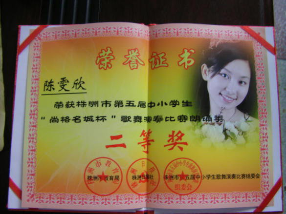 陈雯欣 歌舞演奏比赛朗诵类二等奖