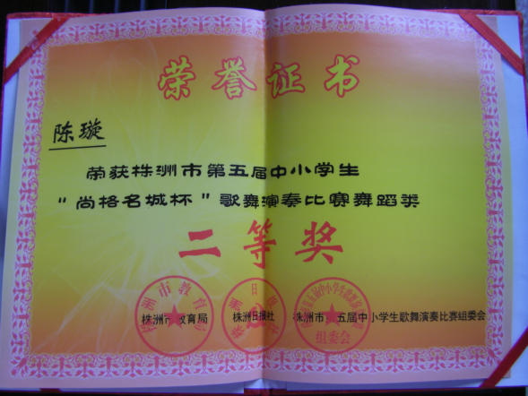 陈璇 歌舞演奏比赛舞蹈类二等奖