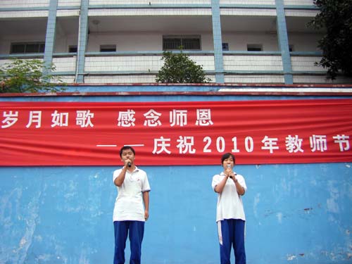 9月10日课间操时间,南方中学全体学生齐聚塑胶操场,动情朗诵《念师恩》,随后由学生代表向教师们献鲜花,给老师们送上节日的祝福。千人齐诵,师生同庆,掀起教师庆祝活动的高潮,也体现了我校尊师重道的良好传统。